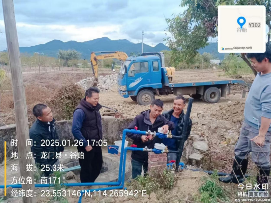 方案确定后,龙门水务克服临近春节施工人员紧缺等困难,第一时间安排进场施工;同步与谷贻村协调供水管用地事宜,理顺各类报装自来水的手续流程。