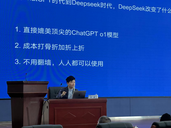 深圳市真实智元科技有限公司创始人兼CEO邵俊博士,讲授《Deepseek赋能高效办公》,通过理论解析、案例研讨与互动交流,助力参训人员掌握AI赋能业务创新的核心方法论。集团总部全体人员,所属企业领导班子,二级企业职能部门正副职、业务主管、年轻骨干代表(35周岁及以下)共约320人参加。