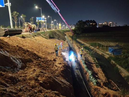 当诗中“最后一斗混凝土”完成凝固后,新平大道项目部传来捷报——5月12日,由惠州水务集团所属水电公司承建的新平大道供水管道扩容改造工程(一期)顺利完成与原管道的接驳工作,正式具备通水运行条件。