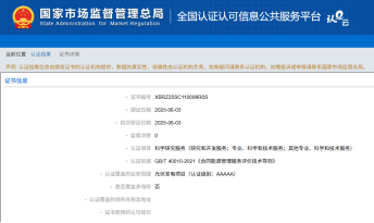 绿水公司顺利通过GB/T 40010-2021《合同能源管理服务评价技术导则》标准认证,获得“合同能源管理服务认证证书”(证书编号:XBRZ25SC110098R0S)。该证书由北京信标认证有限公司颁发,认证级别为最高等级“AAAAA”,认证范围为光伏发电项目。此项认证充分肯定了绿水公司在合同能源管理领域的专业能力与服务水准。