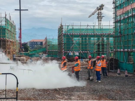 上午9时,公司党委副书记、总经理邢路宣布演练正式开始。本次演练精心设计了施工现场综合办公楼及钢筋加工区电气短路引发火灾的模拟场景,系统演练了火灾报警、人员疏散、初期灭火、医疗救护等全流程应急处置环节。演练过程中,各应急小组反应迅速、配合默契:疏散引导组高效组织作业人员沿预定路线有序撤离;灭火行动组熟练运用灭火器、消防水带快速控制火势;医疗救护组专业实施心肺复苏并完成伤员转运;通信联络组规范对接外部救援力量。整个演练过程组织严密、处置得当,充分展现了参演人员的应急处置能力。