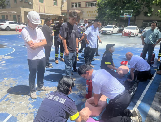理论筑基,夯实安全根基。演练开始前,谭振明教官围绕施工安全核心要点,系统讲解了安全概述、沟槽作业规范、密闭空间作业风险、消防安全管理、心肺复苏(CPR)及止血包扎技术等内容,结合真实事故案例,深入剖析了施工现场常见隐患。