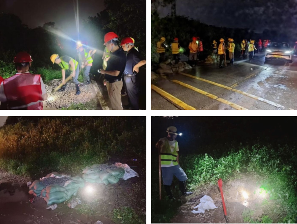紧急响应,科学研判险情。6日下午17点45分,公司接到市三防指挥部要求前往潼湖处置管涌险情的指令,公司主要领导高度重视,立即安排2名技术骨干赶往现场,与仲恺农工局专家联合勘查,研判管涌成因及危害程度,制定抢险方案。18点50分,公司由副总经理刘志辉、抢险分队队长李雪川带队,运送编织袋、救生衣等抢险物资赶到抢险点。