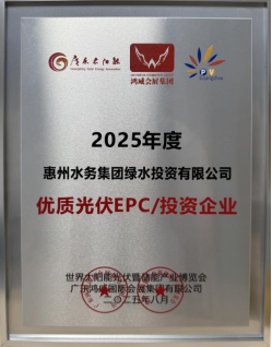 2025年8月9日,由广东省太阳能协会、广东鸿威国际会展集团联合主办的“2025世界太阳能光伏&储能产业博览会”在广州隆重开幕。经博览会专家评审委员会严格遴选,惠州水务集团绿水公司凭借在“光伏+水务”场景的标杆性项目和绿色投资创新模式,特别是在“光伏+水务”应用场景的创新实践,荣膺“2025优质光伏EPC/投资企业”重要奖项。