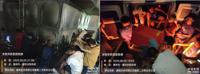 从地下泵房的积水深处到居民家中的水龙头,惠阳水务人始终坚守在第一线,以高度的责任感和使命感,全力以赴投入到抢险复供工作中,为群众用水无忧保驾护航。