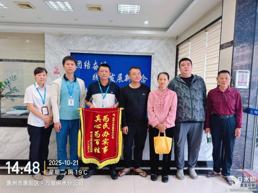 锦旗致谢!惠阳水务靠前服务解民忧