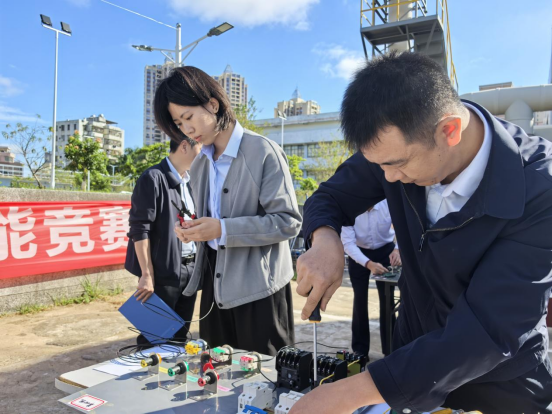 水表安装竞赛现场率先掀起热潮,随着裁判一声哨响,各组选手即刻投入实战,从测量定位、裁剪管材、紧固配件到拼接组装,一系列动作行云流水、一气呵成,引得观摩职工连连称赞。其中,来自空港分公司的林顺坤与陈玉春配合默契无间,技艺精湛娴熟,仅用3分51秒便高质量完成全部流程,成功斩获该项目一等奖。