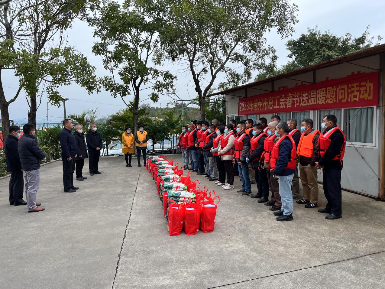 在慰问活动现场,曾明波代表市总工会,向“两江一河”水面保洁项目一线全体员工致以诚挚问候和新春祝福。他强调,东江、西枝江、新开河穿城而过,连接着惠州市各大片区,是惠州市“亲水惠州生态水城”的城市名片。一直以来,“两江一河”作为惠州的城市水脉,水生态环境保护工作备受社会各界和市民群众关注,“两江一河”水面保洁一线员工为保护东江、西枝江、新开河水环境,早出晚归,不畏严寒酷暑,不惧脏臭,辛勤工作,让两江一河永葆青春靓丽,市总工会代表广大市民表示感谢和敬意。2023年是学习贯彻中共二十大精神的开局之年,希望大家以更加奋发有为的精神状态履职尽责,更好的服务于社会各界及人民群众。
