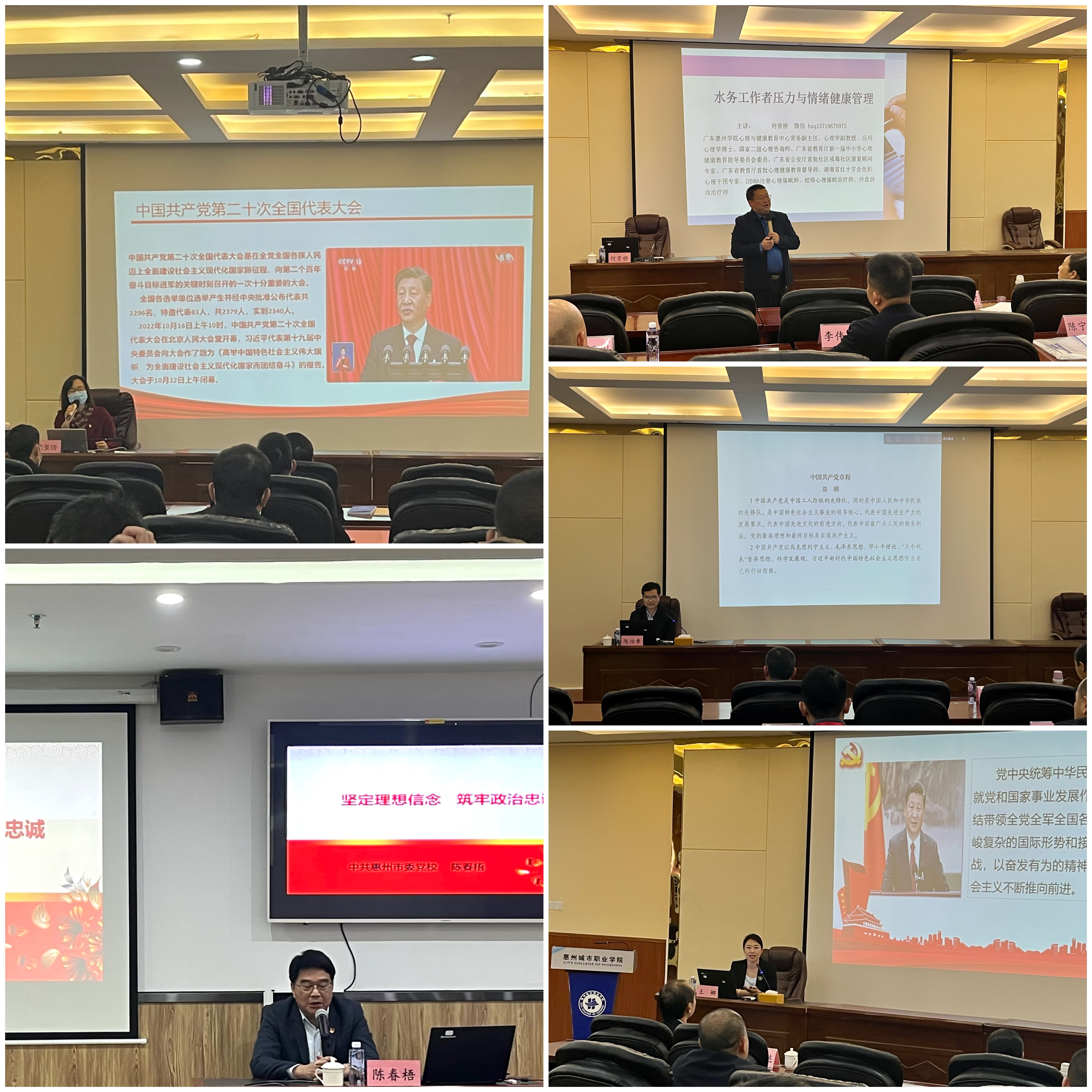 为深入学习贯彻党的二十大精神,进一步提升党务干部的政治素养和业务能力,激发党组织新活力,市供水公司近日在惠州城市职业学院举办党务干部专题培训班,公司领导班子成员、各党支部班子成员及党务工作者共40人参加培训。