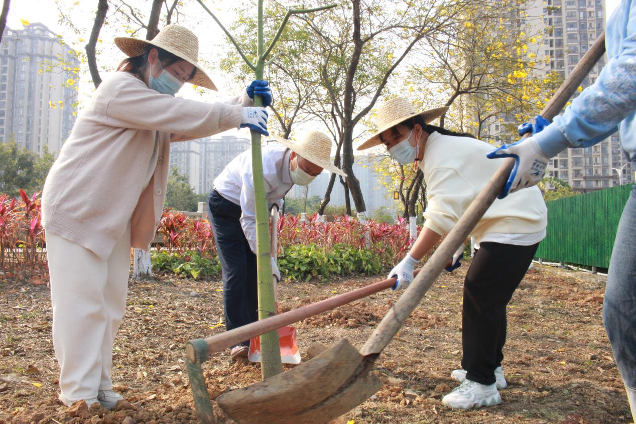在望江沥管护项目现场,公司首先组织了志愿植树活动,现场人员自由组队分工,挖坑、铲土、种树、浇水,一片春种的繁忙景象。不到一个小时,树苗已全部种下。大家通过亲身参与植树活动,感受到了植树造林的不易与艰辛,更加坚定了守护绿水青山的光荣使命。