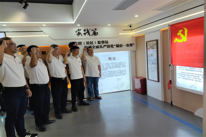 在沙田镇廉政教育馆,机关党支部、水务工程党支部、沙田分公司党支部及秋长分公司党支部党员重温入党誓词,参观“基层监督”“警示教育”“家风家训”等展厅,集中观看了警示教育片,一幅幅生动形象的廉政画面,一部部发人深省的数字影像,全方位、多角度直接冲击和触动了党员干部的视觉和心灵。