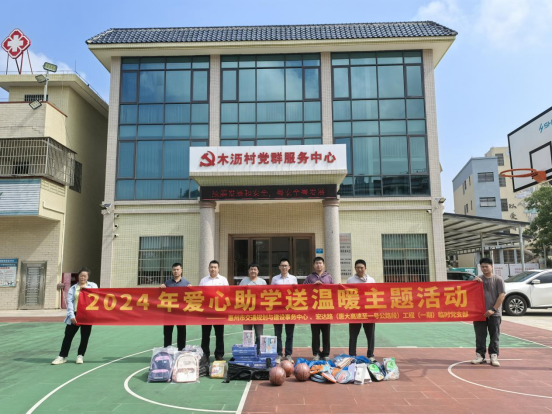 爱心助学,温暖前行。近日,惠州市交通规划与建设事务中心与我司宏达路(惠大高速至一号公路段)工程(一期)临时党支部在木沥村党群服务中心联合开展了一场爱心助学活动,为木沥小学的困难学生送上了一份助学爱心。