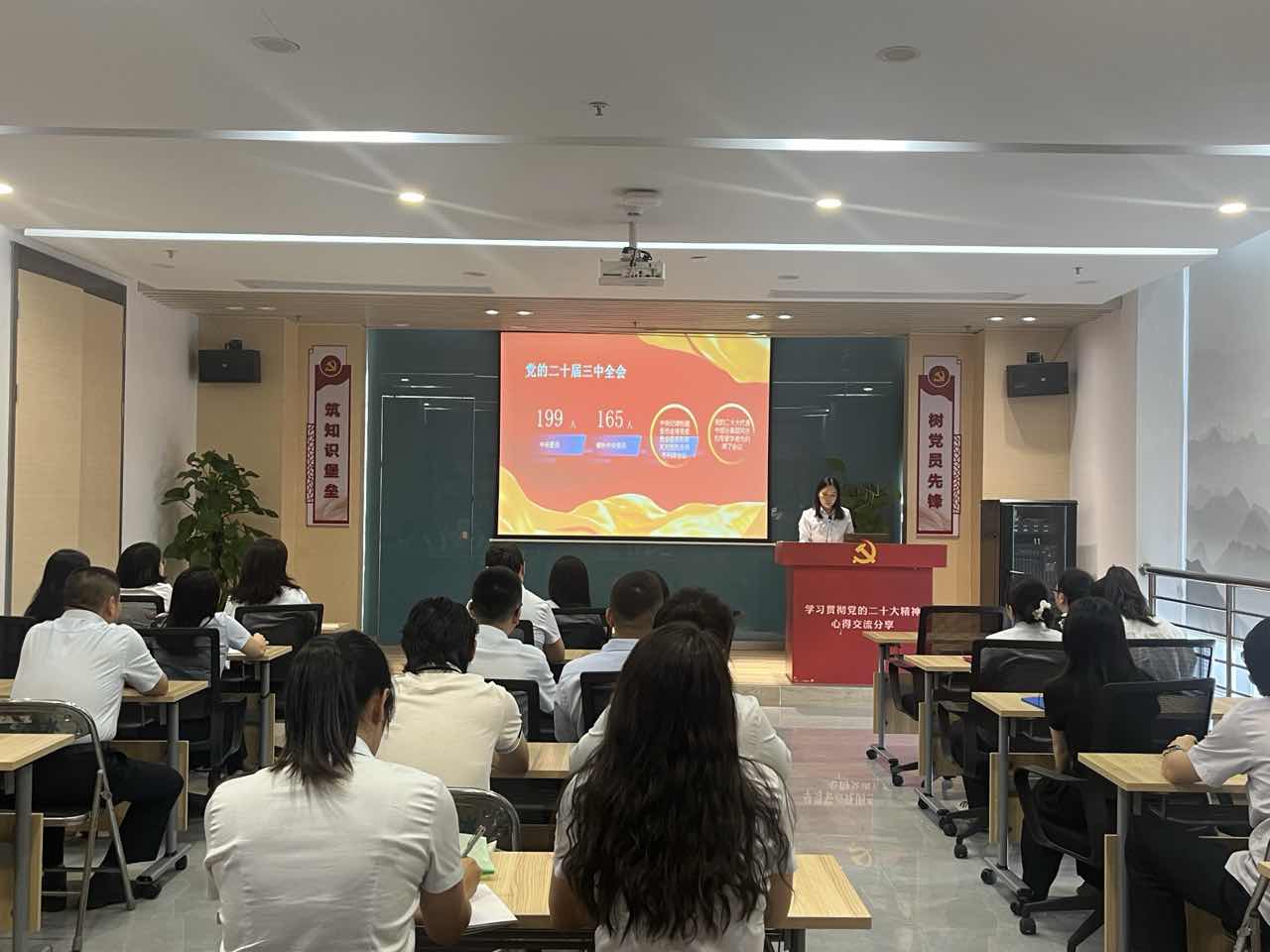 黄海燕以《进一步全面深化改革 推进中国式现代化——深入学习贯彻党的二十届三中全会精神》为题,深入剖析全会提出的一系列新思想、新观点和新要求,组织公司支部委员、党务工作者结合工作经验“学思想、悟精神、谈体会”,共同凝聚奋进力量。